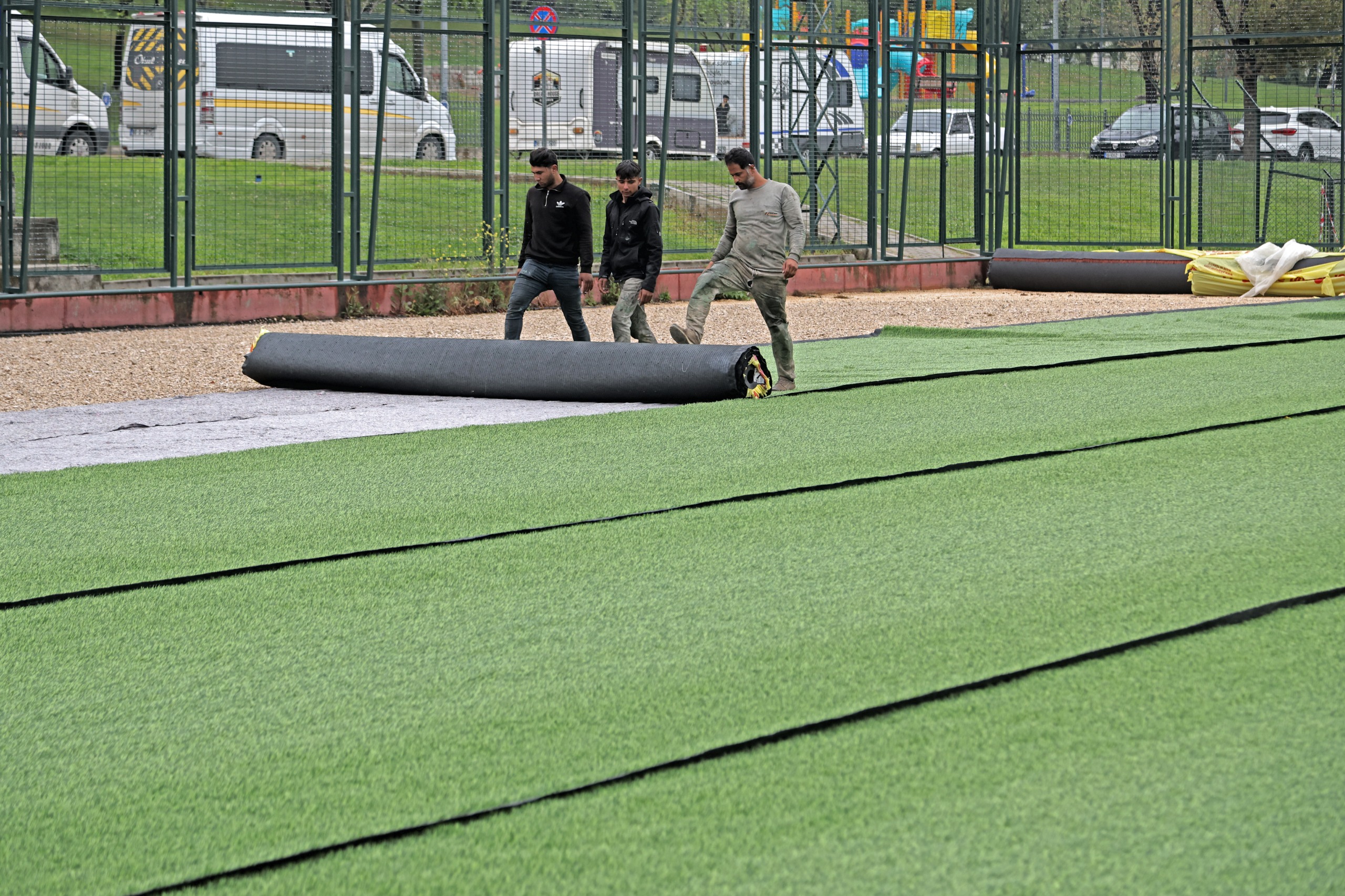 BASIN BÜLTENİBAĞLARBAŞI SPOR TESİSLERİ YENİLENİYOR-BURSA BÜYÜKŞEHİR BELEDİYESİ, OSMANGAZİ İLÇESİNE BAĞLI BAĞLARBAŞI MAHALLESİ'NDEKİ SPOR TESİSLERİNİ BAŞTAN AŞAĞI YENİLEYEREK DAHA KONFORLU HALE GETİRİYOR.BURSA- Gençleri sporla daha fazla buluşturmak için yatırımlarını sürdüren Bursa Büyükşehir Belediyesi, spor altyapısını güçlendirirken mevcut tesisleri de modern hale getiriyor. Bu kapsamda Bağlarbaşı Spor Tesisleri’nde bulunan iki sentetik çim saha ve çevrelerinde yenileme çalışmaları yürütülüyor. Antrenman sahasının zemini baştan aşağı yenilenirken, çevre çitlerinde tadilat ve boya işlemleri de gerçekleştirildi.Profesyonel müsabakalara uygun ölçülerdeki sentetik çim sahanın da çevre çitlerinde tadilat ve boya çalışmaları tamamlanırken, tribünlerde zarar gören bölümler onarılarak yenilendi. Bakım ve onarım çalışmalarının eş zamanlı olarak devam ettiği tesis, daha estetik ve kullanışlı bir görünüme kavuşturuluyor.Bağlarbaşı Mahallesi’nin Bursa’nın en büyük mahallelerinden biri olduğunu vurgulayan Bağlarbaşı Spor Kulübü Başkanı Güven Gülüm, spor okulunda 600’e yakın gencin futbol oynadığını söyledi. Büyükşehir Belediyesi’nin duyarlılık göstererek yıpranmış olan halı sahaları yenilediğini belirten Gülüm, “Aylardır istediğimiz antrenmanları yapamıyorduk. Şu anda mahallede müthiş bir sevinç var. Büyükşehir Belediyesi’ne ve çalışmaları yürüten ekiplere teşekkür ederiz” dedi.BURSA BÜYÜKŞEHİR BELEDİYESİ
