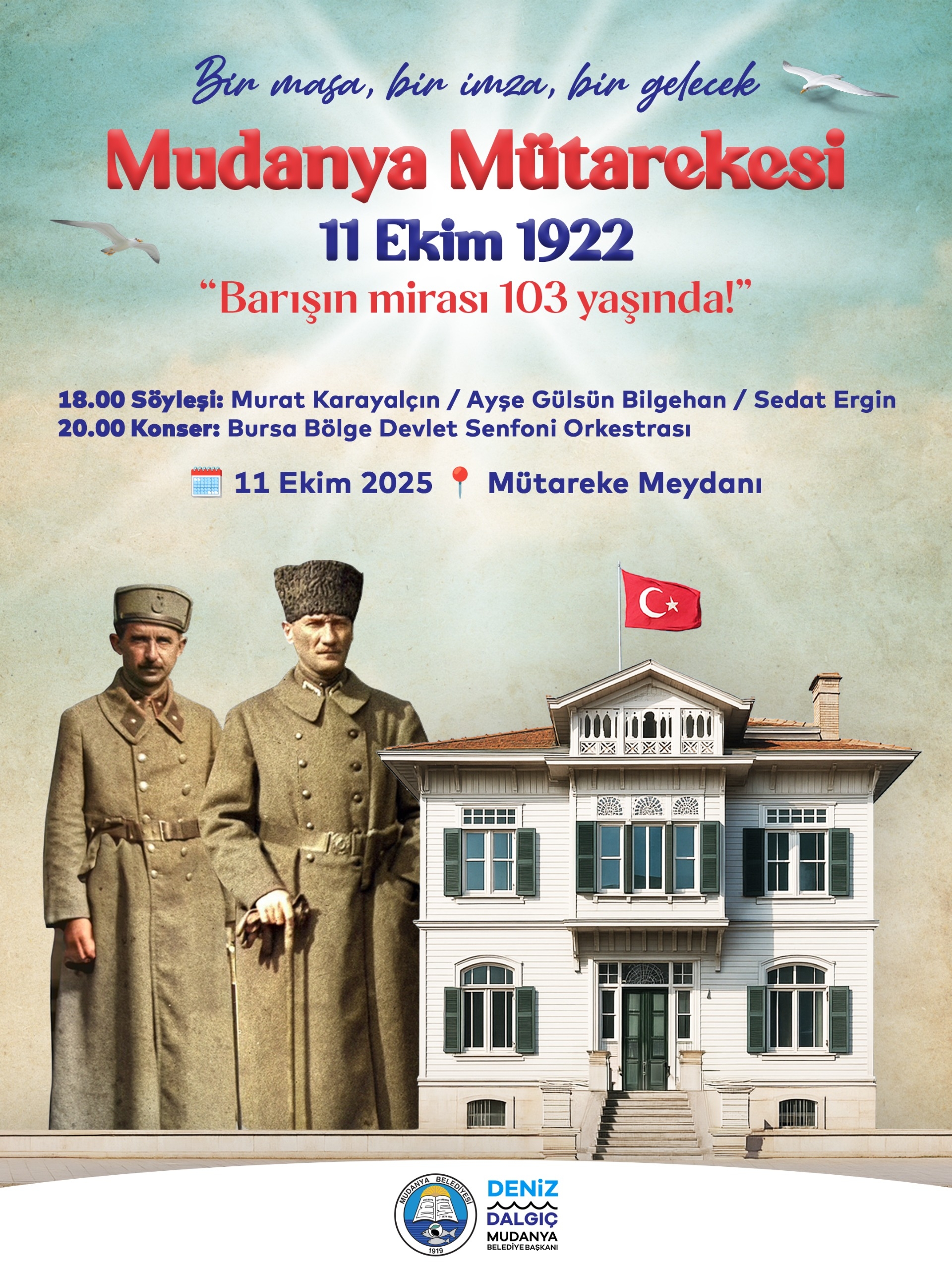 Mudanya Belediyesi, Türkiye’nin bağımsızlık yolundaki dönüm noktası olan Mudanya Mütarekesi’nin 103. yıl dönümünü “Bir masa, bir imza, bir gelecek” temasıyla kutlayacak. Başkan Deniz Dalgıç, “Mudanya,...