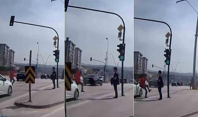 Bursa’nın Nilüfer ilçesinde trafik ışıklarının araçlara yeşil yandığı sırada karşıya geçmek isteyen bir yaya, akan trafiğe aldırış etmeden yola çıktı.O esnada seyir halinde olan bir otomobil, aniden önüne çıkan yayaya çarpmamak için manevra yaptı.Kazanın eşiğinden dönülen olayda, yaya son anda attığı adımla aracın altında kalmaktan kurtuldu.Yaşanan o korku dolu anlar ise başka bir otomobilin araç içi kamerasına anbean yansıdı.