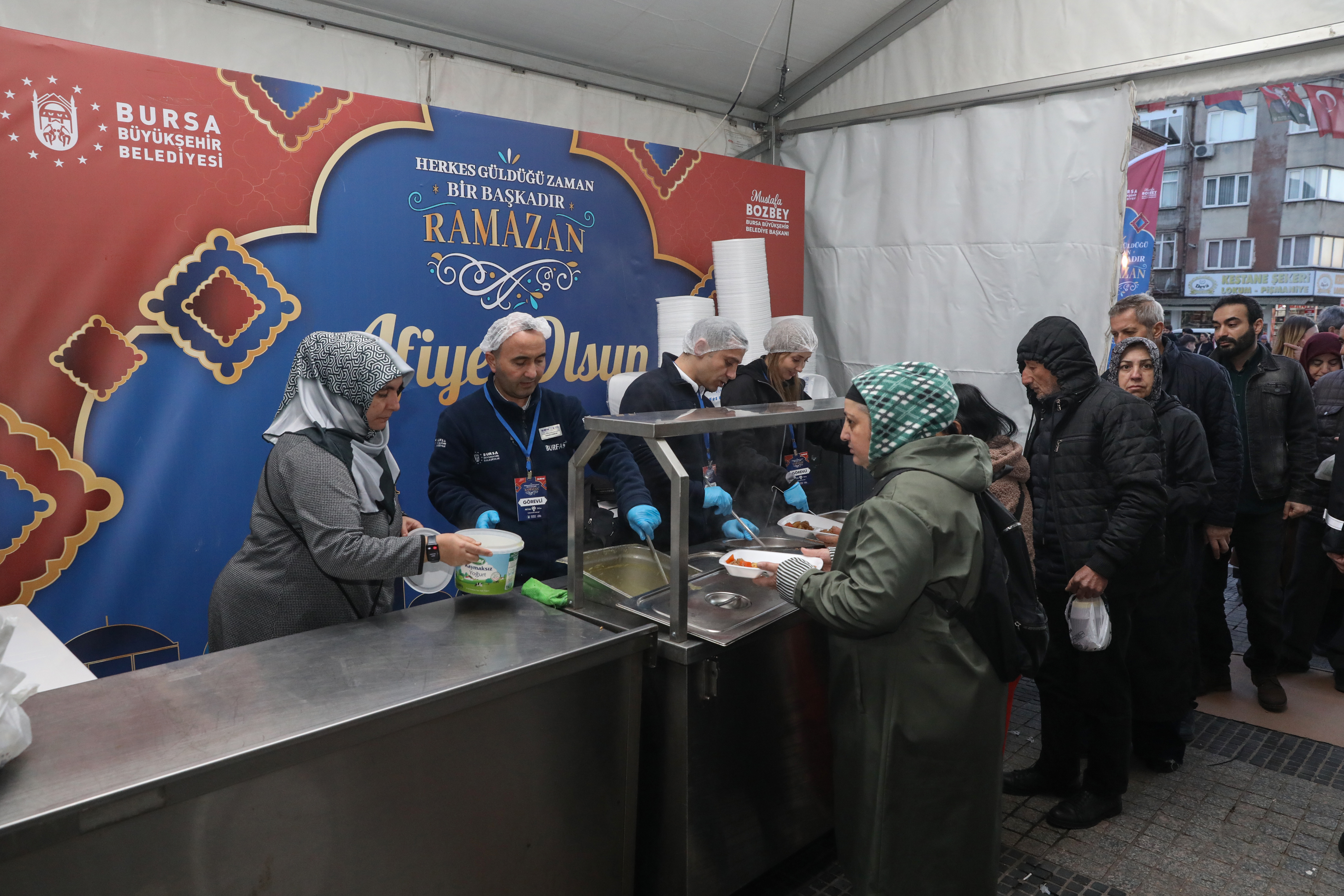 Bursa Büyükşehir Belediyesi tarafından sosyal belediyecilik örneği olarak kente kazandırılan 3 Kent Lokantası da Ramazan boyunca ihtiyaç sahiplerine ücretsiz olarak hizmet veriyor. Kentin 14 ayrı noktasında ise her gün ekipler tarafından iftara yetişemeyen vatandaşlara iftariyelik dağıtılıyor.