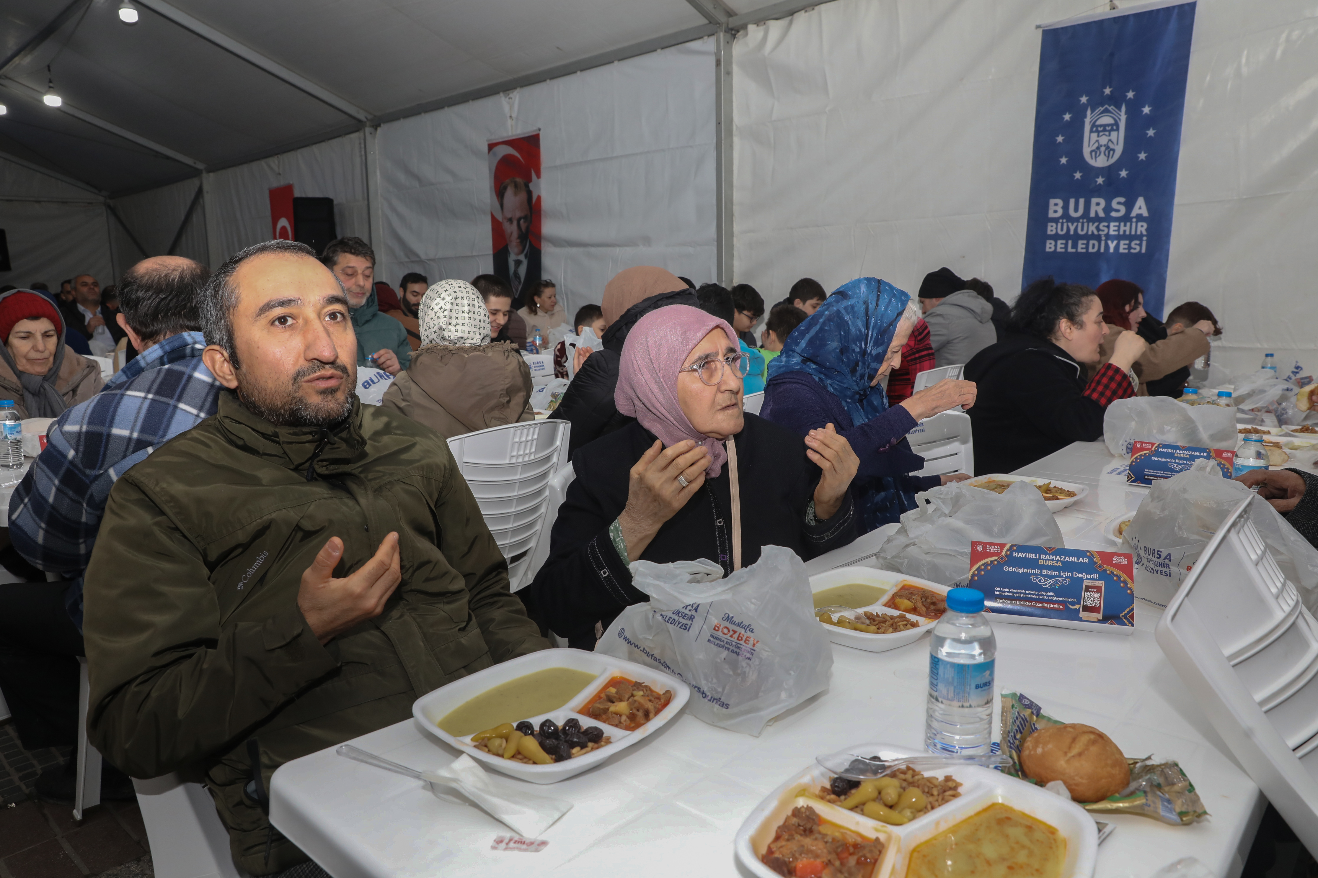 İftar çadırlarında oruçlarını alan Bursalılar, kendilerini yalnız hissettirmeyen ve Ramazan’ın bereketini her mahalleye ulaştıran Başkan Mustafa Bozbey’e gönülden teşekkür etti.