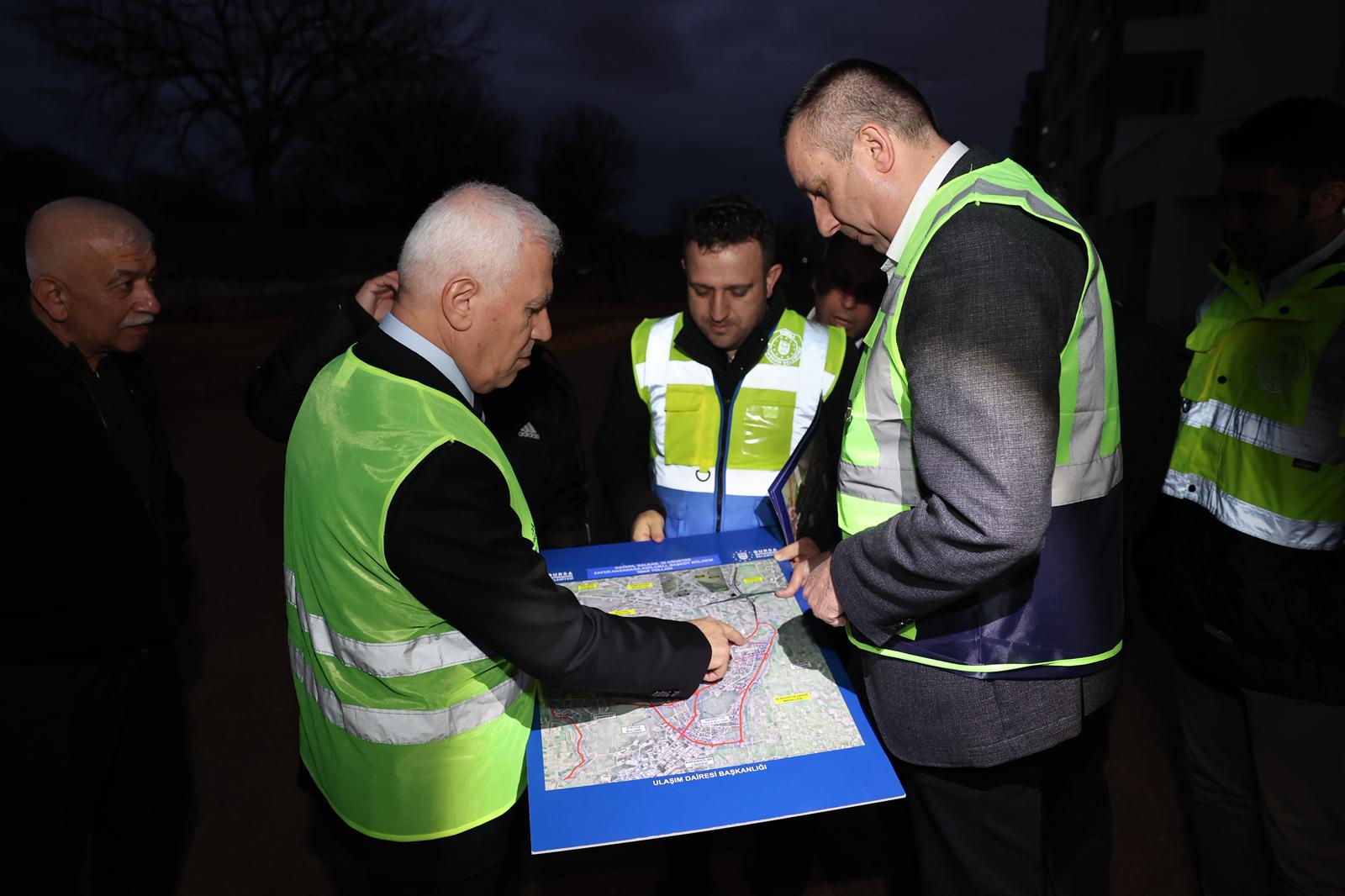 Bursa Büyükşehir Belediyesi, kentin ulaşım sorunlarını azaltmak için gece gündüz demeden çalışıyor. Nilüfer ilçesi 30 Ağustos Zafer Mahallesi’ndeki Akçeşme Caddesi’nde de yol yapım çalışmaları aralıksız sürdürülüyor.