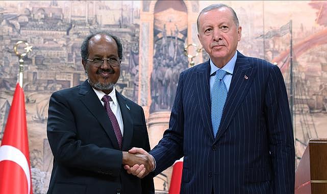 Cumhurbaşkanı Recep Tayyip Erdoğan, Dolmabahçe Çalışma Ofisi’nde ikili ve heyetler arası görüşmelerinin ardından Somali Cumhurbaşkanı Hasan Şeyh Mahmud ile ortak basın toplantısı düzenledi.Cumhurbaşkanı Mahmud’u İstanbul’da ağırlamaktan büyük bir memnuniyet duyduğunu belirten Erdoğan, Somali’yle her alanda gelişmeye devam eden ilişkilerin temelinde köklü, tarihi, beşeri ve kültürel bağların olduğunu söyledi.Erdoğan, 2026’da Somali ile diplomatik ilişkilerin tesisinin 60’ıncı senesinin idrak edileceğini ifade ederek, bu sağlam temel üzerinde ilişkileri ilerletmeye, Somali’nin güvenlik ve istikrarına destek vermeye devam edeceklerini kaydetti.Cumhurbaşkanı Erdoğan, 2011’de başbakanlığı döneminde kuraklık felaketiyle mücadele eden Somali’ye gerçekleştirdiği ziyaretin ardından kapsamlı bir insani yardım kampanyası başlattıklarını anımsatarak, “Tüm dünyanın Somali’den ümidini kestiği bir dönemde Türkiye tarafından uzatılan dostluk eli iki ülke arasındaki kardeşlik duygularının pekişmesine vesile oldu. Aradan geçen süre zarfında Somali eşine az rastlanır bir ilerleme kaydetti. Somali’nin yeniden ayağa kalkmasını istemeyenlerin çeşitli sabotajlarına rağmen Somali’de güvenlik açısından ciddi bir iyileşme sağlandı.” diye konuştu.Bu süreçte Somali’nin terörle mücadelesine kapsamlı desteği sürdürdüklerini dile getiren Erdoğan, TÜRKSOM Askeri Eğitim Merkezi’nde Somali ulusal ordusuna verdikleri eğitimler ve ekipman desteğiyle teröre karşı Somali’nin yanında olunduğunu gösterdiklerini anlattı.Somali ordusunun terörle mücadelesinde son dönemde önemli başarılar elde etmesini memnuniyetle müşahede ettiklerini aktaran Erdoğan, güvenlik ortamındaki iyileşmenin, Somali siyasetinde reform adımlarını beraberinde getirdiğine dikkati çekti.Erdoğan, Somali Cumhurbaşkanı Hasan Şeyh Mahmud’un çabaları neticesinde 25 Aralık’ta başkent Mogadişu’nun da dahil olduğu Benadir idari bölgesinde uzun bir sürenin ardından yerel seçimler yapıldığını belirterek, seçim sonuçlarının Somali halkı için hayırlara vesile olmasını diledi.