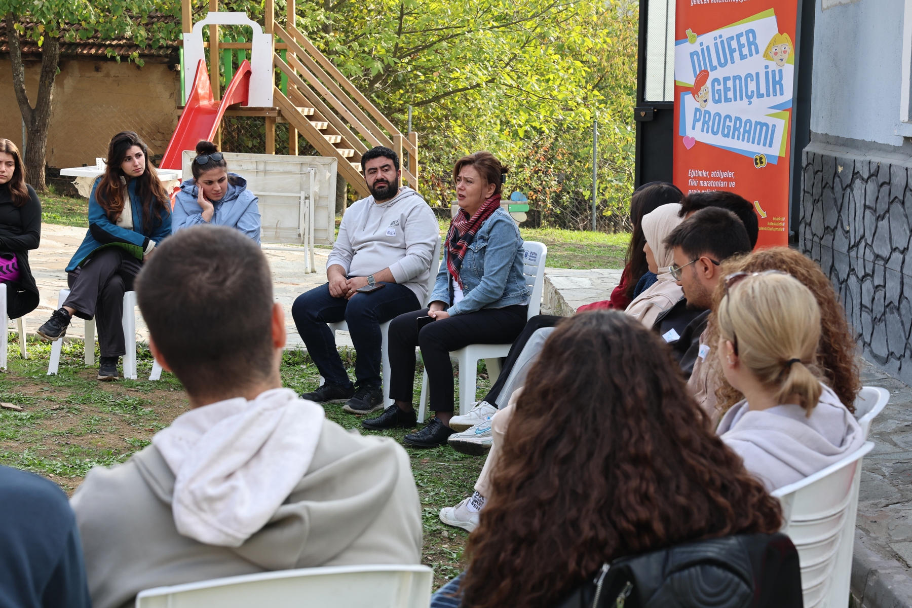 BİRLİKTE YÖNETME VURGUSUProgramın son bölümünde “Yerel Yöneticilerle Söyleşi” etkinliği düzenlendi. Nilüfer Belediye Başkan Yardımcısı Bukle Erman’ın katıldığı bu bölümde gençler, merak ettiklerini sordu ve kente dair önerilerini dile getirdi. Karşılıklı diyaloglarla ilerleyen söyleşide gençler; ulaşım, spor alanları, parklar ve yerel müzisyenlerin çalabileceği mekanlar gibi farklı taleplerde bulundu. İstek ve önerilerini sözlü iletmenin yanı sıra yazılı olarak bildirmelerinin de önemli olduğunu belirten Nilüfer Belediye Başkan Yardımcısı Erman, “Nilüfer Her Yerde” uygulamasını kullanarak, bildirimlerini dijital ortamda takip edebileceklerini kaydetti. Kenti birlikte yönetmenin önemine işaret eden Erman, gençlerin katılımcı olmalarını istedi. Gençlere yönetimlerde yer almaları çağrısında bulunan Erman, “Ortak ufka ihtiyacımız var. Hepimizin inanacağı bir ufka ihtiyacımız var. Binalara girin, isteyin. Orada olmak zorundasınız” ifadeleriyle gençleri aktif rol üstlenmeye davet etti.