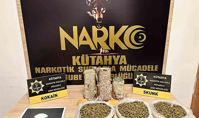 Kütahya'da narkotik ekiplerince uyuşturucuyla yakalanan şüpheli tutuklandı.Kütahya'da uyuşturucu kullanımı ve ticaretinin önüne geçmek için çalışmalarına hız kesmeden devam eden İl Emniyet Müdürlüğüne bağlı narkotik ekiplerince Kütahya'ya uyuşturucu madde getirdiği tespit edilen şahıs yakalandı. Şahsın yapılan kontrollerinde, 490 gram skunk ve 8 gram kokain maddesi ele geçirildi.Gözaltına alınan şüpheli şahıs emniyetteki işlemlerinin ardından çıkarıldığı mahkemece tutuklandı.