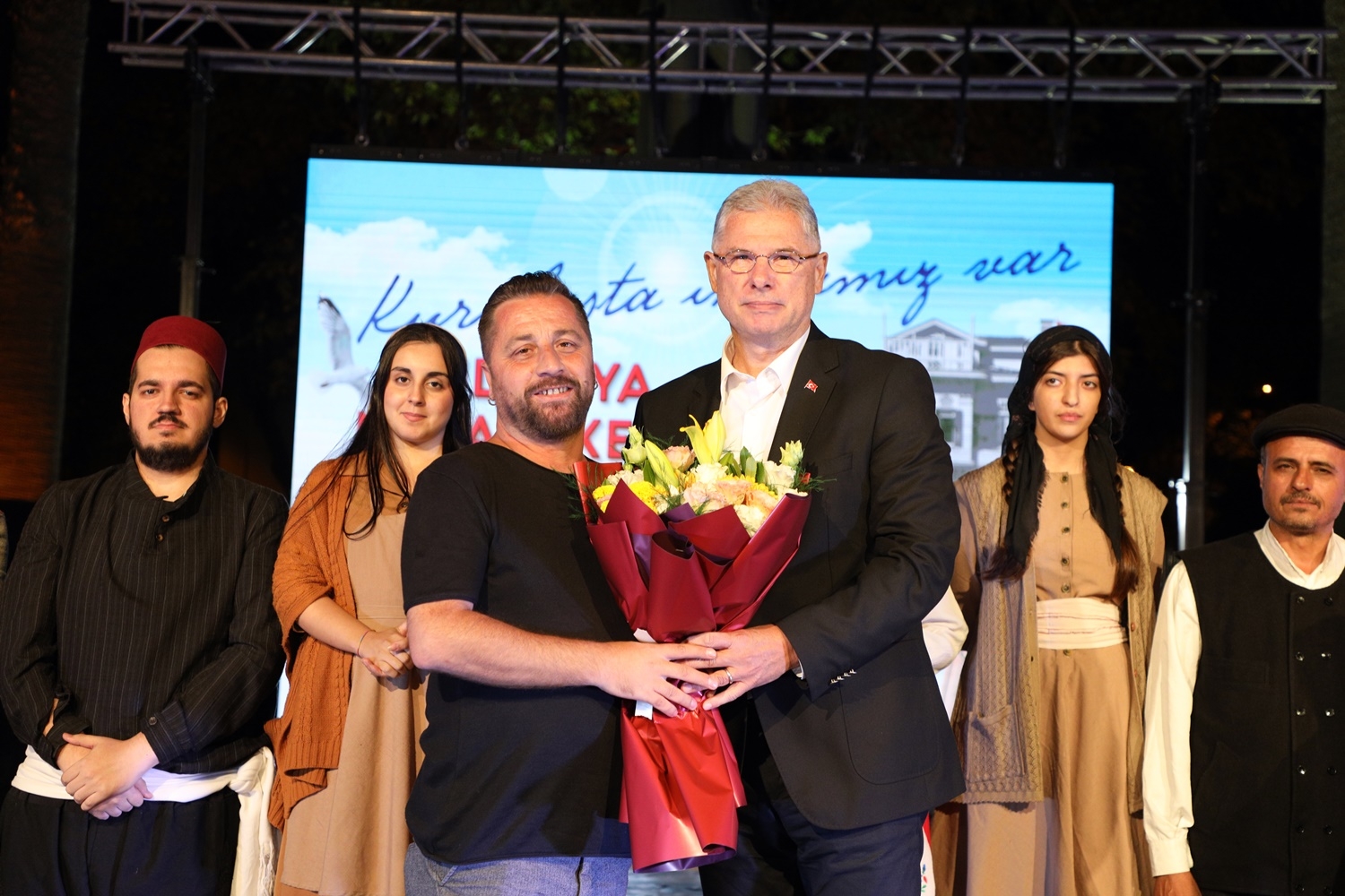 Mudanya Mütarekesi’nin 102’nci yıl dönümü etkinlikleri kapsamında Mudanya Kent Konseyi Tiyatro Topluluğu tarafından sahnelenen “Mübadil Öyküleri” oyunu duygusal anlara sahne oldu. Mudanya Mütarekesi’nin 102’nci yıldönümü etkinliklerinin beşinci gününde Mudanya Kent Konseyi Tiyatro Topluluğu’nun Mehmet Tamer Uyar yönetiminde sahnelediği “Mübadil Öyküleri” izleyicilerle buluştu.Mütareke Meydanı’nda sahnelenen oyunu Mudanya Belediye Başkanı Deniz Dalgıç, CHP İlçe Başkanı Kurtuluş Furkan Atalay’ın yanı sıra meclis üyeleri ve Mudanyalılar izledi. Türk-Yunan Nüfus Mübadelesi sırasında yaşanan zorlukları, göç edenlerin umutları ve özlemlerini anlatan oyun izleyenlere duygu dolu anlar yaşatırken, gösterinin sonunda verilen barış ve kardeşlik mesajları günün anlam ve önemini bir kez daha ortaya koydu.Mudanyalıların ayakta alkışladığı oyunun yönetmen ve oyuncularına teşekkür eden Mudanya Belediye Başkanı Deniz Dalgıç, kırgınlıklara, kavgalara son verip barış içinde hep birlikte yaşamak gerektiğini vurguladı. Yaşanan acı ve fedakarlıklara dikkat çeken Dalgıç, “Uğruna bu kadar dert çekilen bir şeye daha çok sahip çıkmamız gerekiyor. Bu hikayeler bize bunları anlatıyor. Mudanya için gerçekten atalarımız gerçekten büyük sıkıntılar çektiler, bu kadar acılara katlandılar. Bu kadar uğruna dert çekilen şey daha da kıymetli oluyor. Yaşasın Mudanya!” MUDANYA BELEDİYESİ BASIN BÜROSU