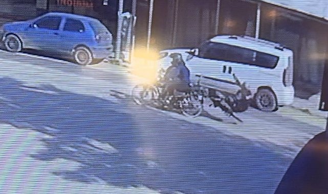Bursa'nın İnegöl ilçesinde meydana gelen kazada motosiklet ile bisiklet çarpıştı; 2 kişi yaralandı. Kaza anı bir işyerinin güvenlik kamerasına saniye saniye yansıdı.Kaza, saat 15.00 sıralarında Mahmudiye mahallesi Osmanbey Caddesinde meydana geldi. Edinilen bilgiye göre, cadde üzerinde seyir halinde olan Sürücü Serdar Ş. (17) yönetimindeki 16 KLF 73 plakalı motosiklet, sokaktan caddeye çıkan Hayrettin K. (67) yönetimindeki bisiklet ile çarpıştı. Çarpışmanın etkisiyle devrilen araçlardan düşen sürücüler yaralandı.Yaralılar kaza yerine sevk edilen ambulansla İnegöl Devlet Hastanesine kaldırıldı.Kaza anı bir işyerinin güvenlik kamerasına saniye saniye yansıdı. Kazayla ilgili tahkikat sürüyor.