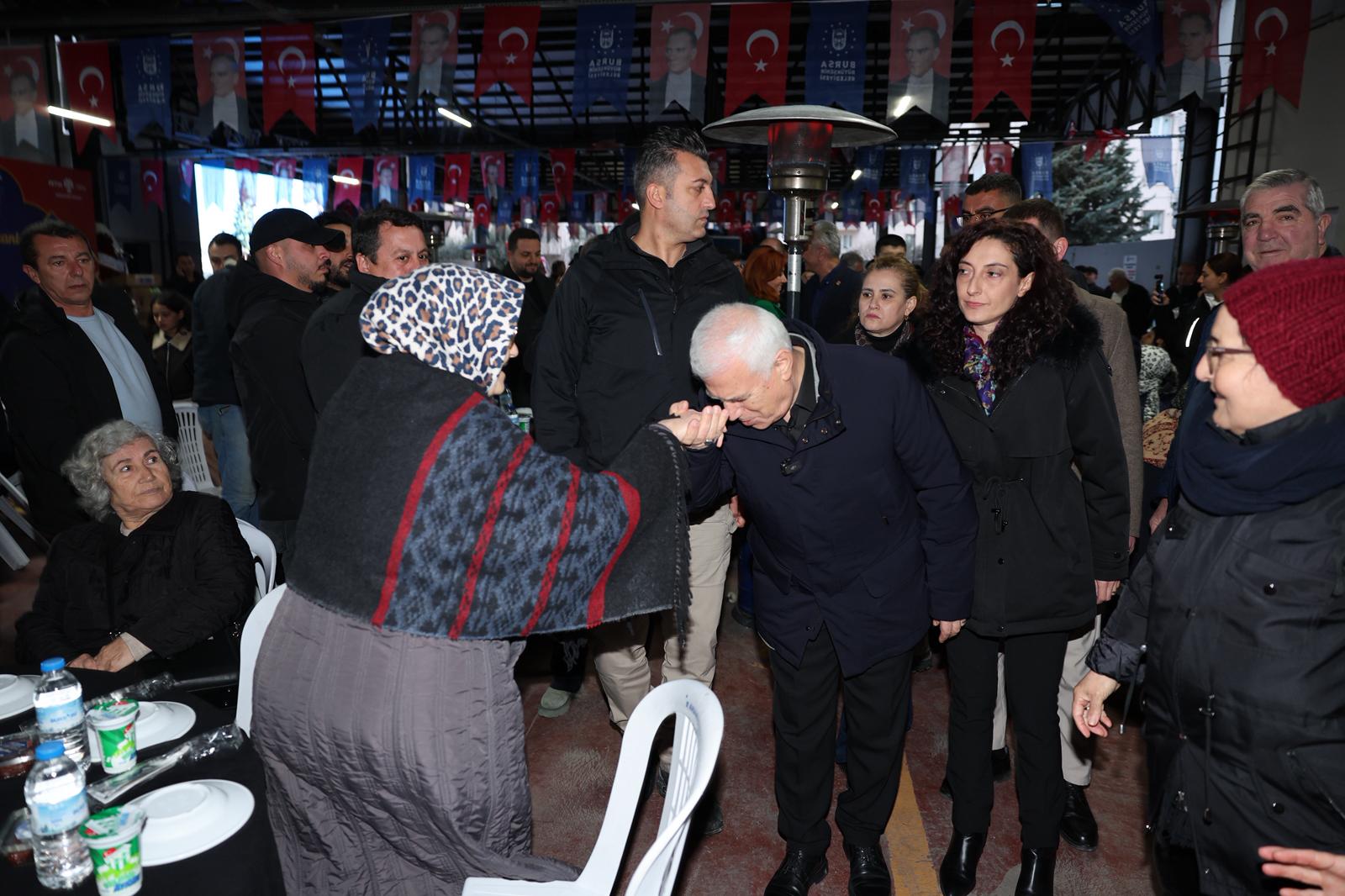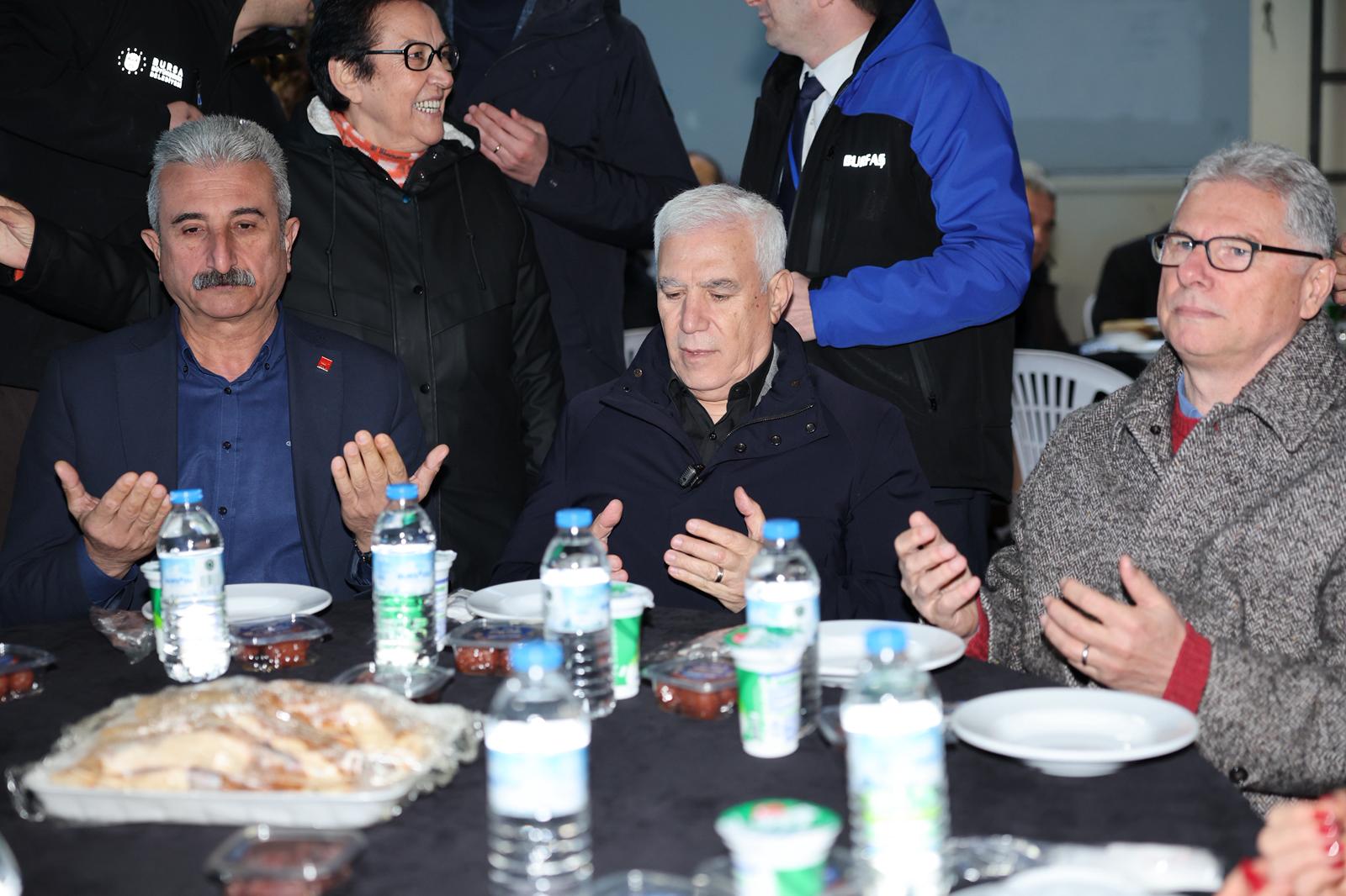 Bursa Büyükşehir Belediyesi’nin Mudanya’da düzenlediği iftar programında yüzlerce kişiyle birlikte orucunu açan Başkan Mustafa Bozbey, "Halkımızla kol kola olduğumuz sürece aşamayacağımız hiçbir engel yok. Hem hizmet edeceğiz hem de hemşehrilerimizle birlikte olmaya devam edeceğiz" dedi.