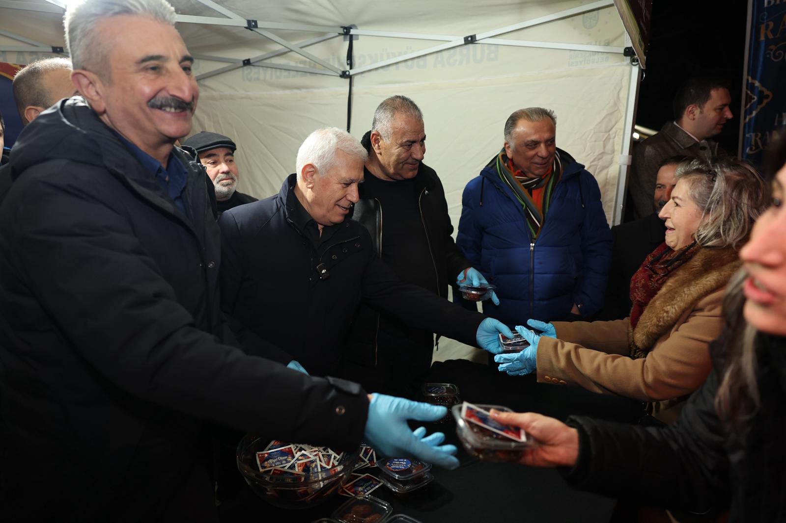 Bursa Büyükşehir Belediye Başkanı Mustafa Bozbey, Ramazan ayında binlerce insanı aynı sofra etrafında buluşturmaktan büyük mutluluk duyduklarını söyledi. Kentin dört bir tarafında iftar sofraları kurarak ve iftariyelikler dağıtarak vatandaşların yanında olduklarını dile getiren Başkan Mustafa Bozbey, “Paylaşma ve dayanışma ruhunu geliştiriyoruz. Halkımızla kol kola olduğumuz sürece aşamayacağımız hiçbir engel yoktur. Hem hizmet edeceğiz hem de hemşehrilerimizle birlikte olacağız. Bursa’nın farkını ortaya koyacağız. Allah hepimizi sağlıklı bir şekilde bayrama da ulaştırsın. Hayırlı Ramazanlar diliyorum” dedi.