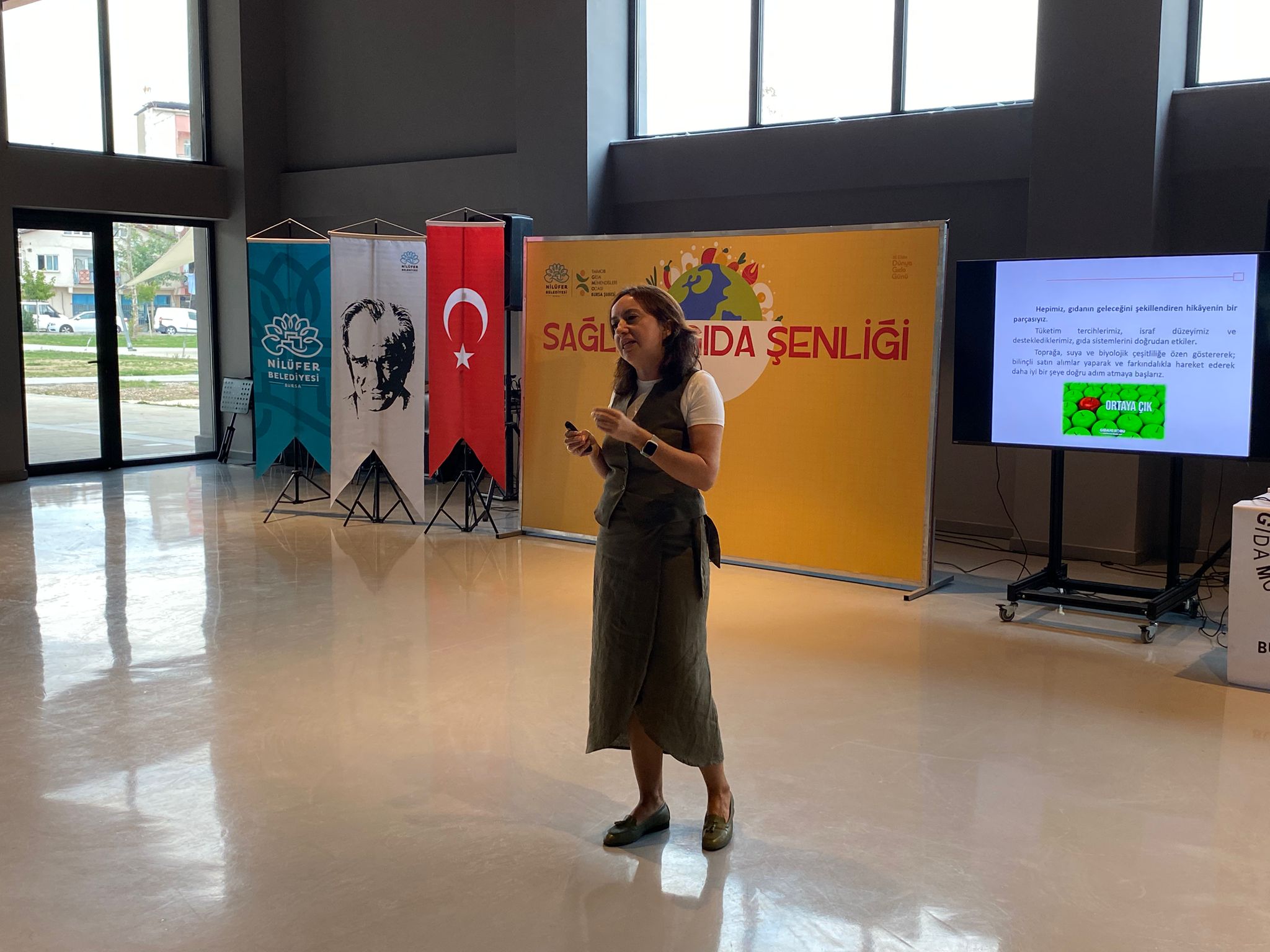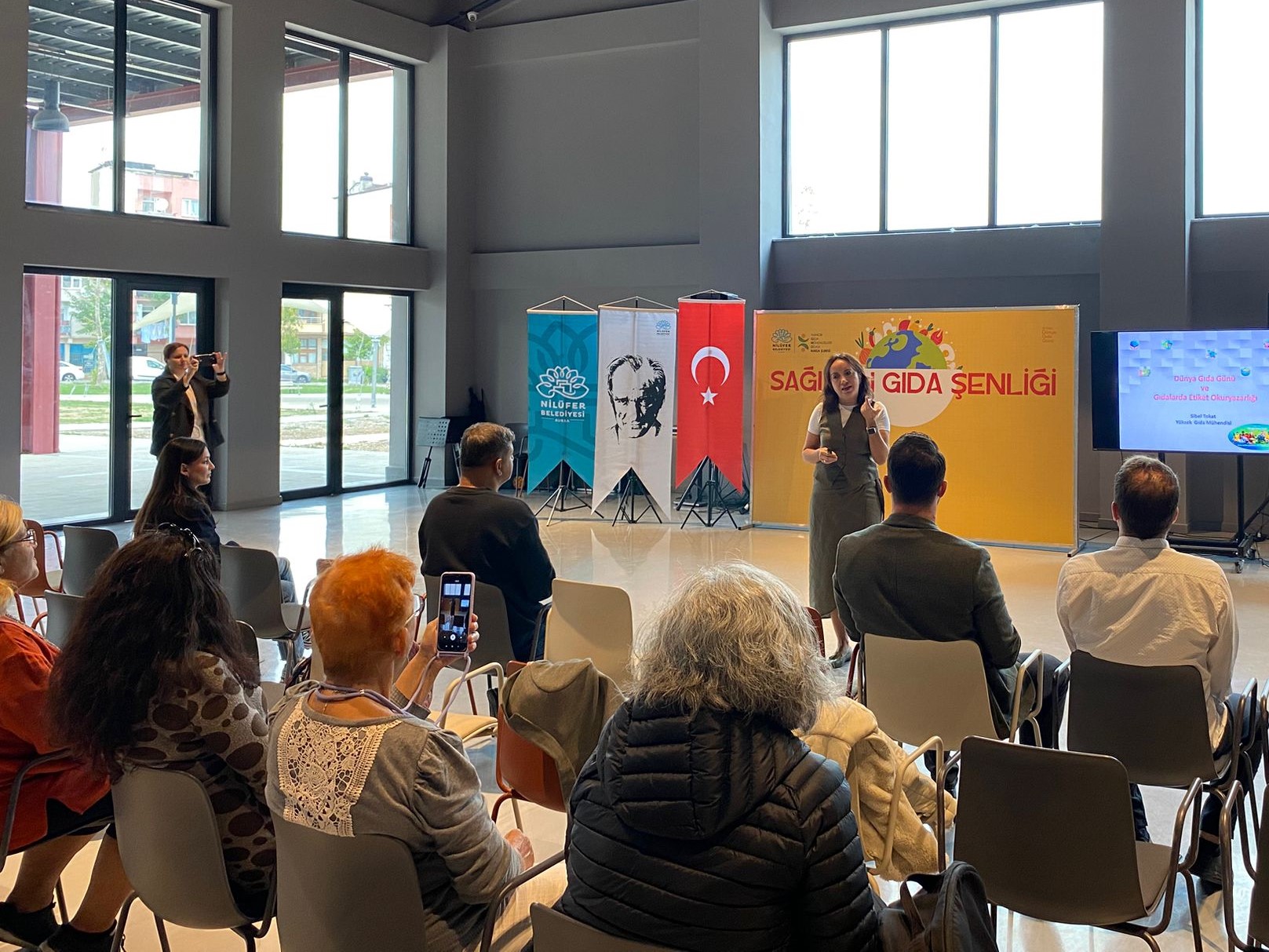 Nilüfer Belediyesi ile TMMOB Gıda Mühendisleri Odası Bursa Şubesi iş birliğinde, güvenli beslenme ve sağlıklı nesiller için farkındalık yaratmak amacıyla gerçekleştirilen “Sağlıklı Gıda Şenliği”, bir söyleşiyle sona erdi. Nilüfer Pancar Deposu’ndaki etkinlikte Sibel Tokat, “Gıda Etiketi Okuryazarlığı” konulu bir sunum yaptı. Etkinliğe Nilüfer Belediye Başkan Yardımcısı Emre Karagöz de katıldı.