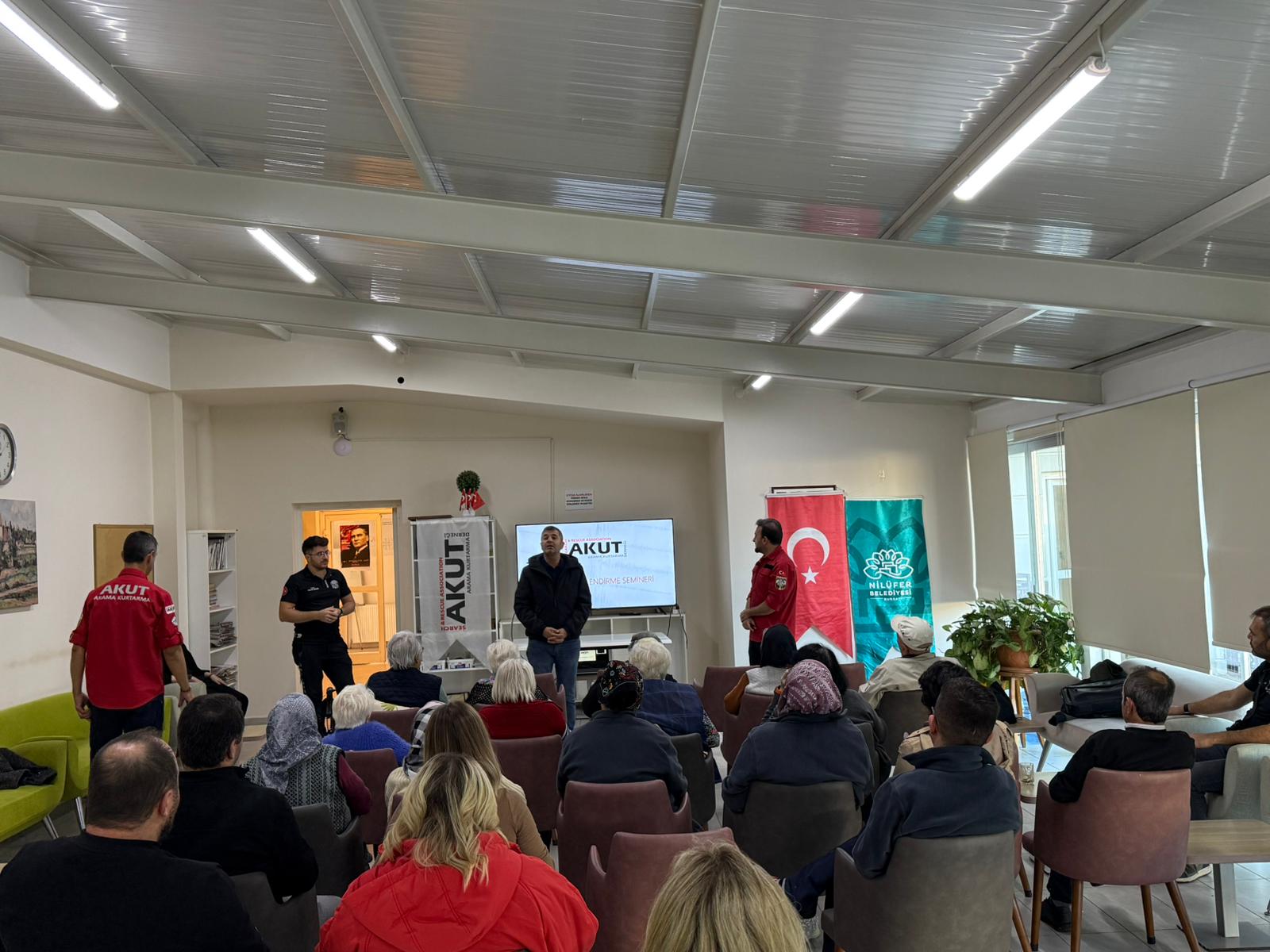 Nilüfer Belediyesi, 13 Ekim Uluslararası Afet Risklerinin Azaltılması Günü kapsamında muhtarlardan kadın derneklerine ve huzurevi sakinlerine kadar toplumun farklı kesimlerine yönelik afet bilinçlendirme eğitimleri düzenledi.Nilüfer Belediyesi, Uluslararası Afet Risklerinin Azaltılması Günü etkinlikleri kapsamında ilçede yaşayan vatandaşların afetlere hazırlık düzeyini artırmak amacıyla çok yönlü bir eğitim programı hayata geçirdi. Nilüfer İlçe Afet ve Acil Durum Yönetim Merkezi’nde gerçekleştirilen eğitimler, toplumun farklı kesimlerini kapsayacak şekilde planlandı.Eğitim programı kapsamında, ilçedeki muhtarlara yönelik “Afetlerde Etkin Haberleşme Eğitimi” düzenlendi. Türkiye Radyo Amatörleri Cemiyeti (TRAC) üyeleri tarafından verilen eğitimde, afet anlarında kesintisiz iletişimin önemi ve alternatif haberleşme yöntemleri ele alındı. Muhtarlar ve Nilüfer Kent Konseyi Afet Çalışma Grubu, olası bir afet durumunda mahalle sakinleriyle koordinasyonu nasıl sağlayacakları konusunda bilgilendirildi ve tatbikat yapıldı. Eğitime Nilüfer Belediye Başkan Yardımcısı Emre Karagöz de katıldı.Kadın dernekleri yöneticilerine verilen eğitimlerde ise; uzman eğitmenler tarafından verilen afet bilinçlendirme eğitiminde, kadın yöneticilere afet öncesi hazırlık, afet anında alınması gereken önlemler ve afet sonrası müdahale yöntemleri hakkında detaylı bilgiler aktarıldı.Etkinlikler kapsamında Nilüfer Belediyesi İnci ve Taner Altınmakas Huzurevi’nde de eğitim gerçekleştirildi. Akut Arama Kurtarma Derneği iş birliğiyle düzenlenen eğitimde, huzurevi sakinlerine özel olarak hazırlanan içerikler sunuldu. Yaşlı vatandaşların fiziksel koşulları göz önünde bulundurularak hem teorik hem de uygulamalı olarak planlanan eğitimde, afet öncesi, sırası ve sonrasında yapılması gerekenler anlatıldı.