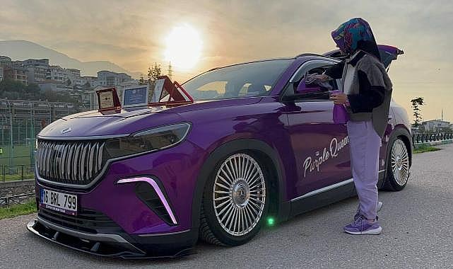 Son olarak yeni aldığı otomobilini de kahverengiden mora dönüştüren Firdevs Çakar, otomobilinin sadece dış kaplamasını değil; içini de mor renkli aksesuarlarla donattı.