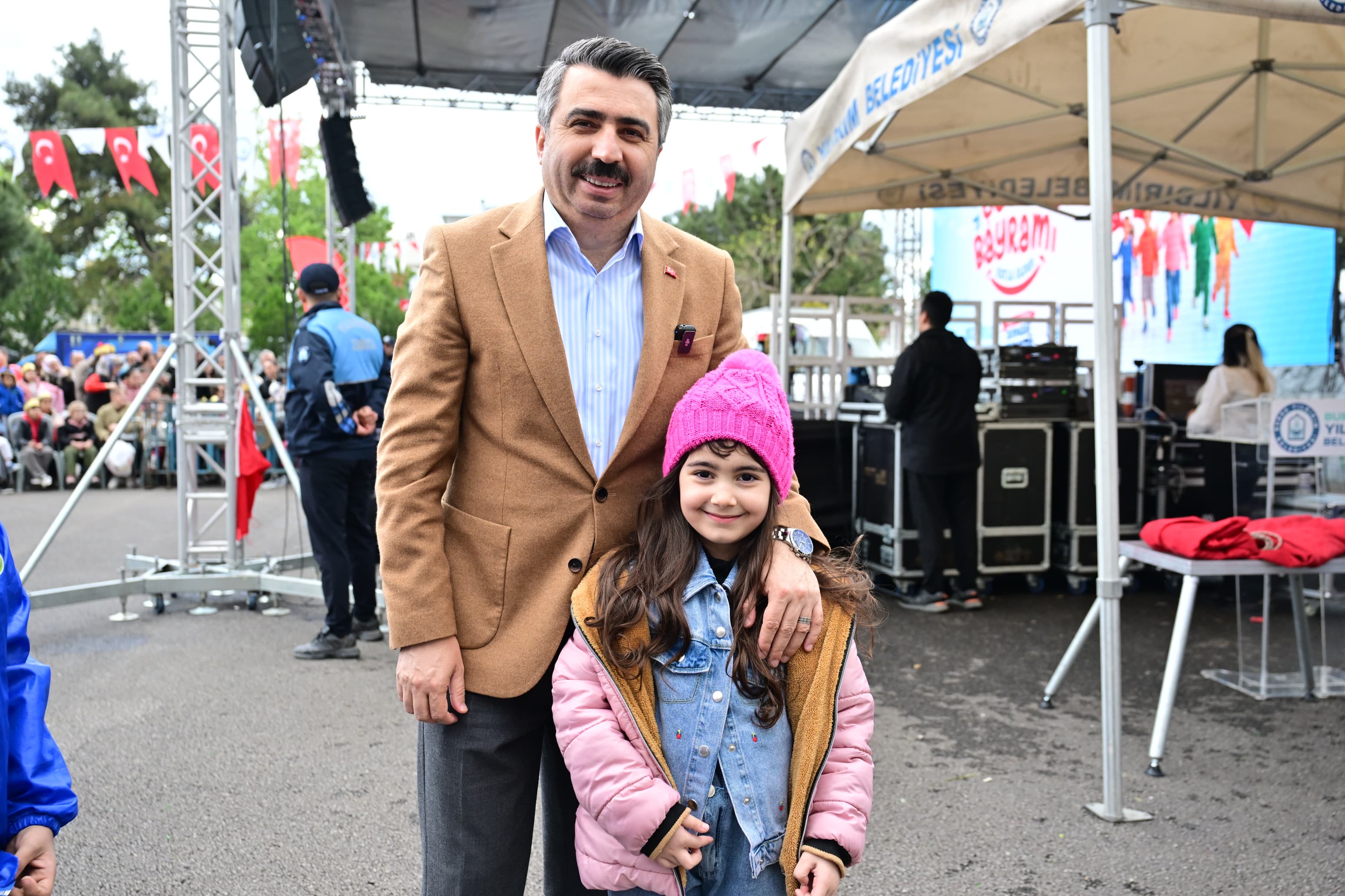 Yıldırım Belediyesi, 23 Nisan Ulusal Egemenlik ve Çocuk Bayramı dolayısıyla düzenlediği organizasyonla çocuklara bayram tadında bir gün yaşattı.Yıldırım Belediyesi, 23 Nisan Ulusal Egemenlik ve Çocuk Bayramı’nı bu yıl da büyük bir coşku ve katılımla kutladı. Yıldırım Belediyesi Etkinlik Alanı’nda düzenlenen kutlama programına katılan çocuklar unutulmaz bir gün geçirdi. Ailelerin de yoğun ilgi gösterdiği kutlamalarda, bayramın neşesi Yıldırım’ın dört bir yanına yayıldı. Etkinlik alanında kurulan özel oyun ve gösteri alanlarında çocuklar; at binme deneyiminden geleneksel sokak oyunlarına, tahta bacak gösterisinden Hacivat ve Karagöz oyununa kadar pek çok aktiviteyle eğlenceli vakit geçirdi. Sirk gösterileri, masal anlatımları ve sahne performanslarıyla adeta bir şenlik havasına bürünen programda, Lemi Abi ve Zuzi Şov’un sahne aldığı anlar ise çocukların en çok ilgi gösterdiği bölümler arasında yer aldı.‘ÇOCUKLARIMIZ HAZİNEMİZDİR’Çocukları bu mutlu günde yalnız bırakmayan Yıldırım Belediye Başkanı Oktay Yılmaz, etkinlik alanını gezerek miniklerle ve aileleriyle bir araya geldi. Bayram coşkusuna ortak olan Başkan Yılmaz, “23 Nisan, milletimizin bağımsızlık meşalesini yaktığı, egemenliğin kayıtsız şartsız millete geçtiği müstesna bir gündür. Gazi Mustafa Kemal Atatürk’ün bu anlamlı günü çocuklara armağan etmesi, onlara duyulan güvenin ve sevginin en somut göstergesidir. Yıldırım Belediyesi olarak bizler de geleceğimizin teminatı olan evlatlarımızın yüzündeki bir tebessümü her şeyin üstünde tutuyoruz. Çocuklarımız bizim en büyük hazinemiz, yarınlarımızın mimarlarıdır. Onların nitelikli, donanımlı ve mutlu bireyler olarak yetişmesi için tüm imkanlarımızı seferber ediyoruz. Bugün burada gözlerindeki o parıltıyı görmek bizler için en büyük motivasyon kaynağı. Tüm çocuklarımızın ve milletimizin 23 Nisan Ulusal Egemenlik ve Çocuk Bayramı’nı en içten dileklerimle kutluyorum” ifadelerini kullandı.